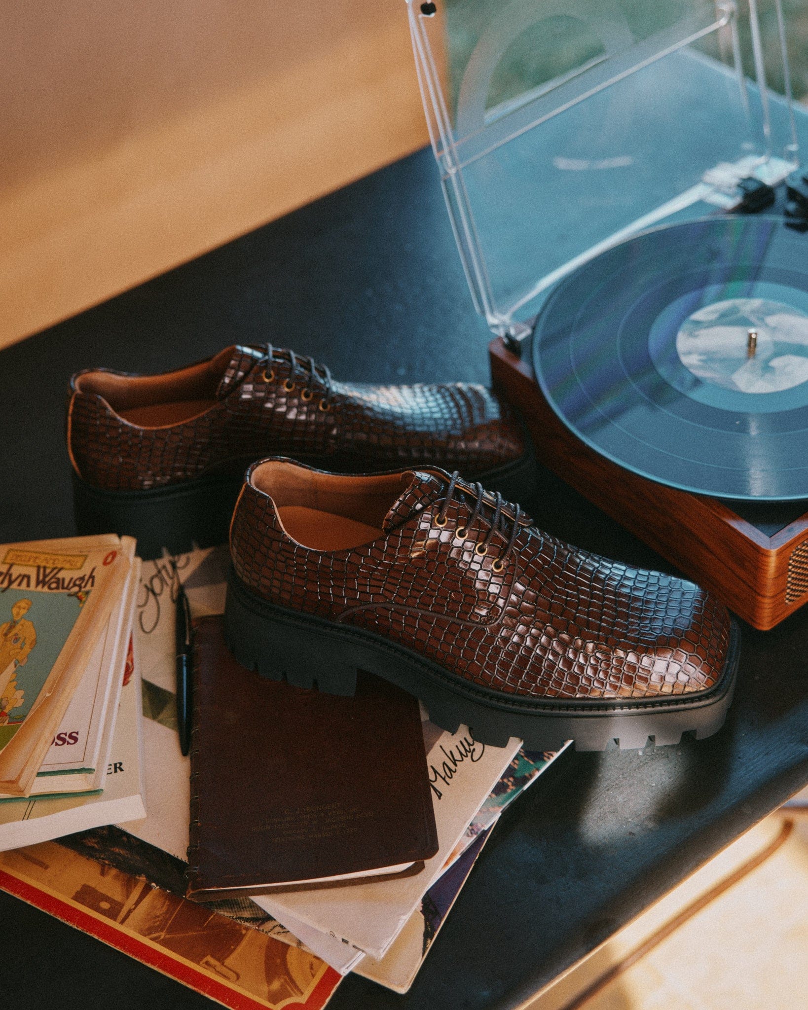 Adler Black Pebble Leather Lug Penny Loafers