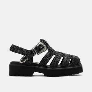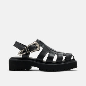 Women's Maya Black Leather Lug Fisherman Sandals