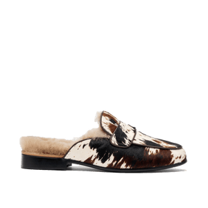 Sophistication. Comfort. These ones are special. Fully lined and trimmed with shearling lining atop luxurious hand-painted multicolor dark horse pony hair making each pair one-of-a-kind.
