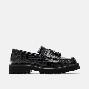 Women's Ms. Journey Black Croc Leather Lug Tassel Loafer