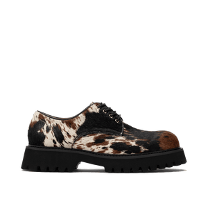 Untamed. Unexpected. Striking multicolor pony hair uppers set on lug soles make you the talk of the town. Let Luca let you live out your Western fantasies. Note: Each shoe is individually hand-painted and will not match exactly to the photos / be exactly alike.