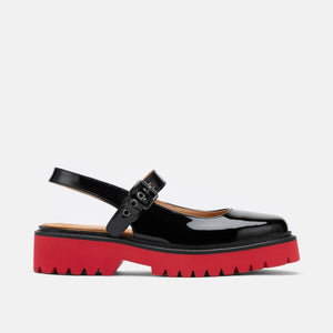 Women's Luna Black Leather Mary Jane Lug Slingbacks