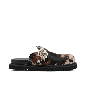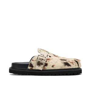Be wild. Be free. Shiloh Clogs designed with Dark Horse pony-hair upper with an adjustable gold buckle straps. Slip on and chill out. Note: Each shoe is individually hand-painted and will not match exactly to the photos / be exactly alike.