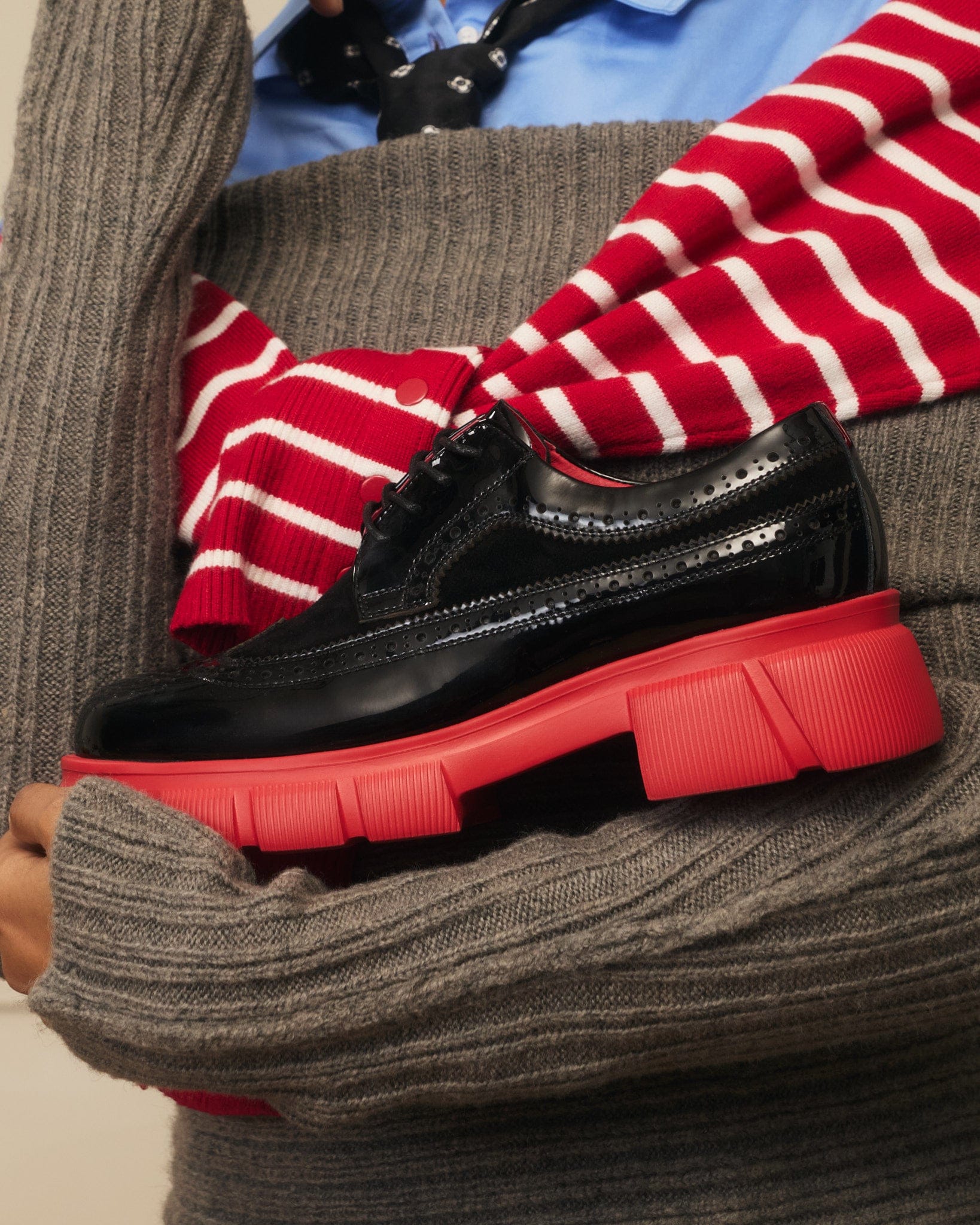 Ms. Alexander Black/Red Leather Lug Wingtip Derby