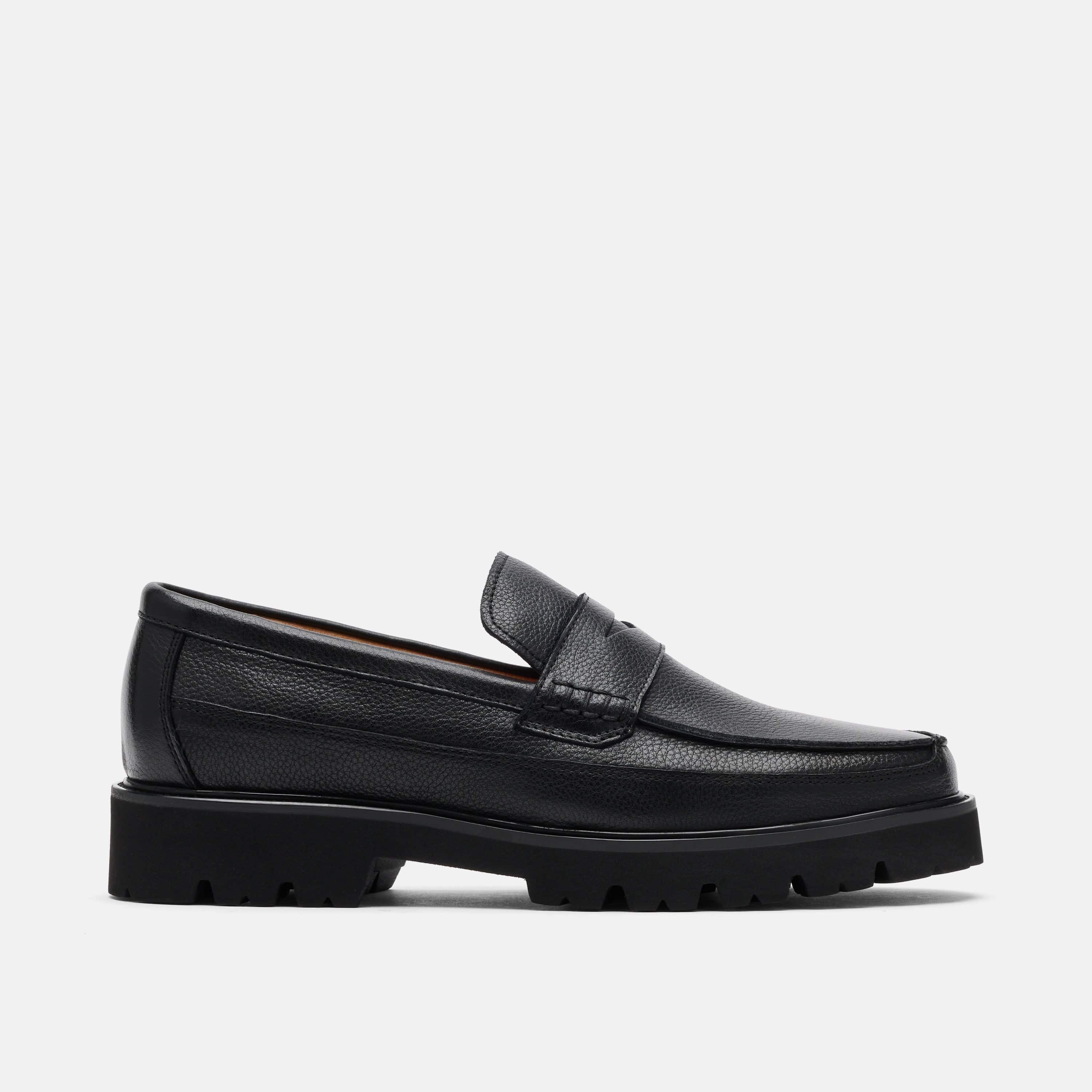 Men's Adler Black Pebble Leather Lug Penny Loafers