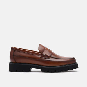Men's Adler Chocolate Brown Pebble Leather Lug Penny Loafers