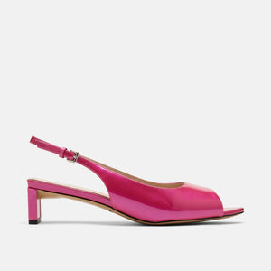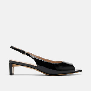 Women's Carmen Black Patent Leather Slingback Peep Toe Heels