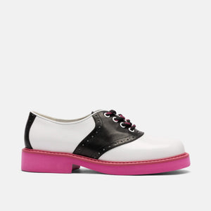 Run the boardroom, own the streets. This hybrid oxford reimagines a classic silhouette with a high-contrast mix of textures and a chunky, modern foundation. Glossy patent leather meets a sharp croc-embossed saddle, while patterned laces add a sporty, graphic touch to this commanding day-to-night essential.
