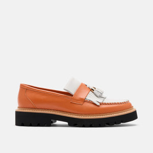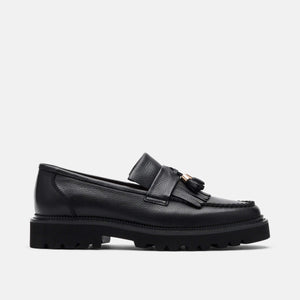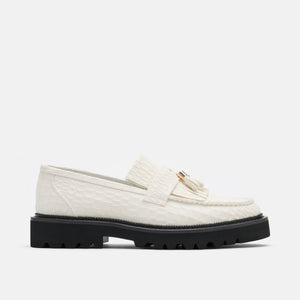 Classic meets contemporary in the Journey Brown Croc Leather Lug Tassel Loafer. Featuring a gold trim tassel detail, brown crocskin embossed calf leather, and a memory foam insole, this loafer offers style and comfort. The rubber lug sole ensures durability for any occasion.