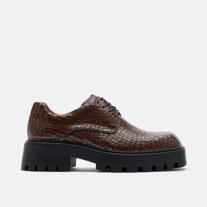 Kryos Brown Croc Leather Lug Derbys