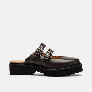 Women's Lexi Brown Distressed Leather Double Buckle Mules